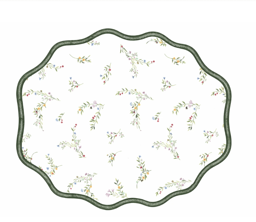 Lugar Americano de formato orgânico produzido em couro ecológico, com bordado em todo o contorno da peça.