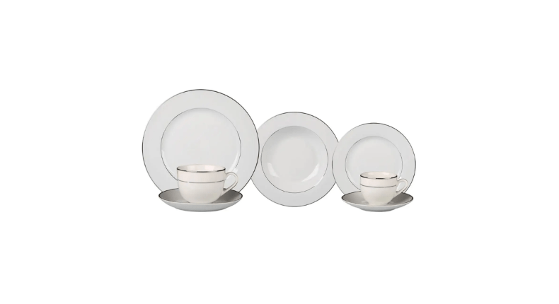 - Design Sofisticado: Cada peça do aparelho de jantar apresenta um design refinado, com uma borda prateada que adiciona um toque único e elegante à sua mesa.