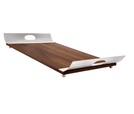 BANDEJA EM MADEIRA COM ALÇA EM INOX COM REVESTIMENTO EM PRATA á mais de 50 anos criando artigos exclusivos de fabricação própria para ambientes sofisticados e arrojados. A empresa foi fundada em 1964. O fundador trouxe de Portugal a arte e a tradição da prata de lei desenvolvendo esse mercado no Brasil com peças de design europeu. Mais tarde criaria a Linha de prata SHEFIELD PLATE com design ora clássico ora contemporâneo, mas sempre atento às tendências do mercado. Com produtos de decoração em banho de prata para a casa toda, é marca referência em qualidade, design e sofisticação de artigos de prata e outros metais nobres.