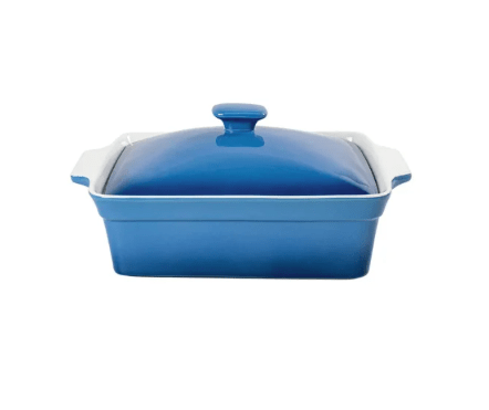 Caçarola Retangular Em Cerâmica Azul Degradê