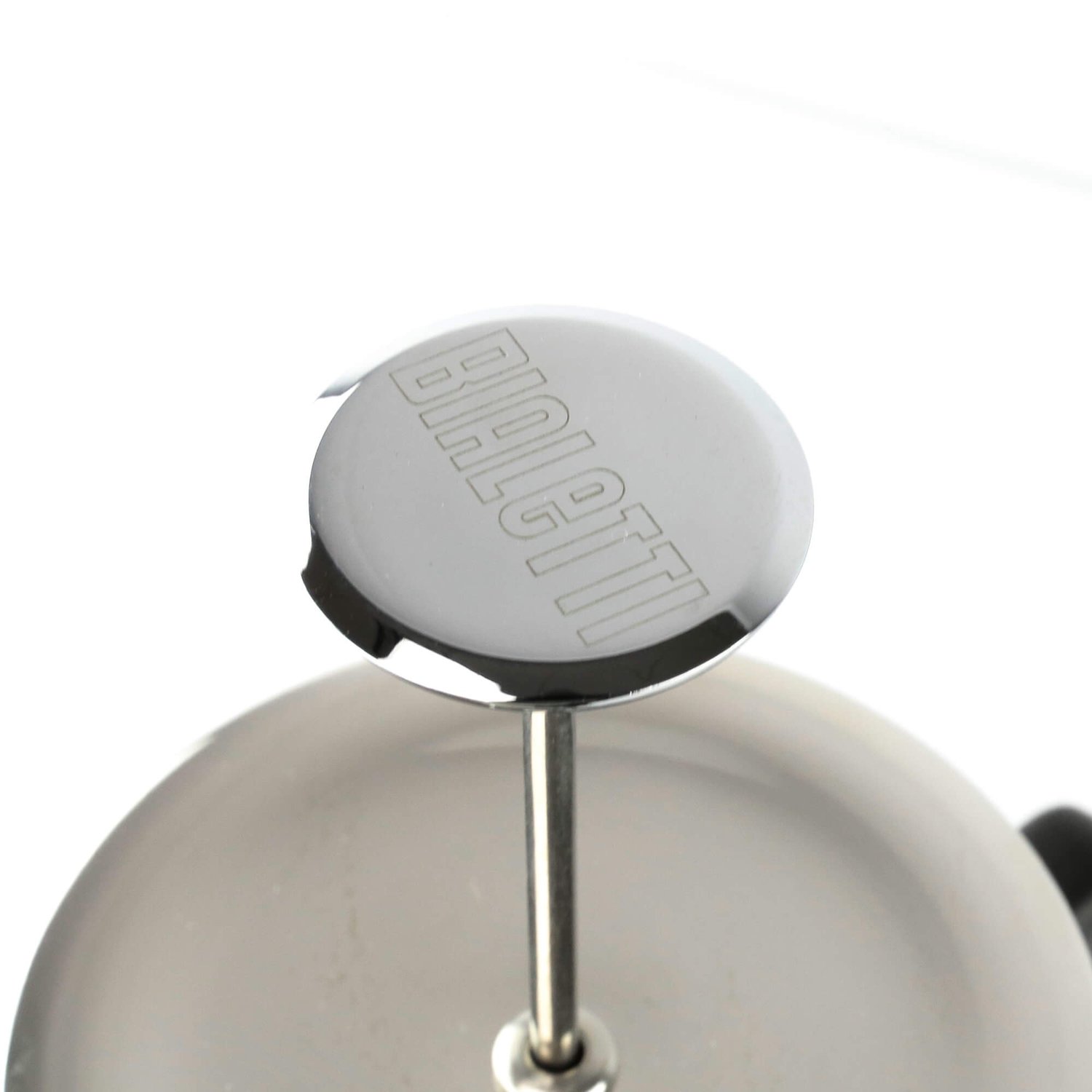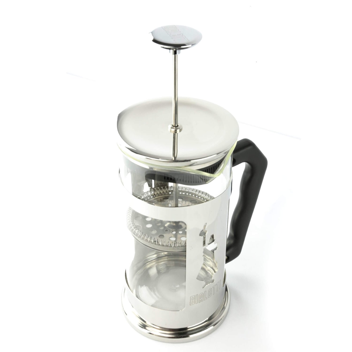 É composta por uma jarra de vidro e no pistão encontra-se uma peneira, uma tela bem fina que é responsável pela filtragem do café, separando o pó do líquido no preparo da bebida. As peças são rosqueadas com uma tampa para que não se soltem e liberem a borra do café no líquido. - Moagem dos Grãos: