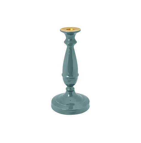 O castiçal tem aproximadamente 24cm de altura, 14cm de diâmetro e é feito em alumínio esmaltado para garantir que não enferruje ou desbote com o tempo.