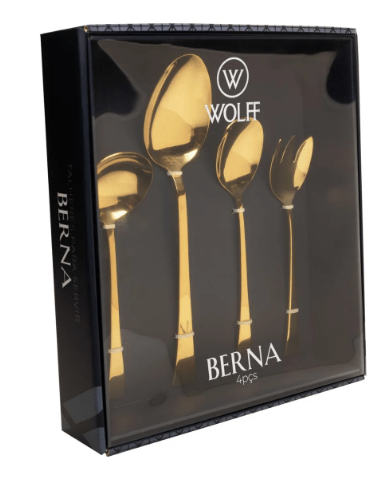 - Contém: 1 Colher para Servir, 1 Colher para Salada, 1 Garfo para Salada, 1 Concha
