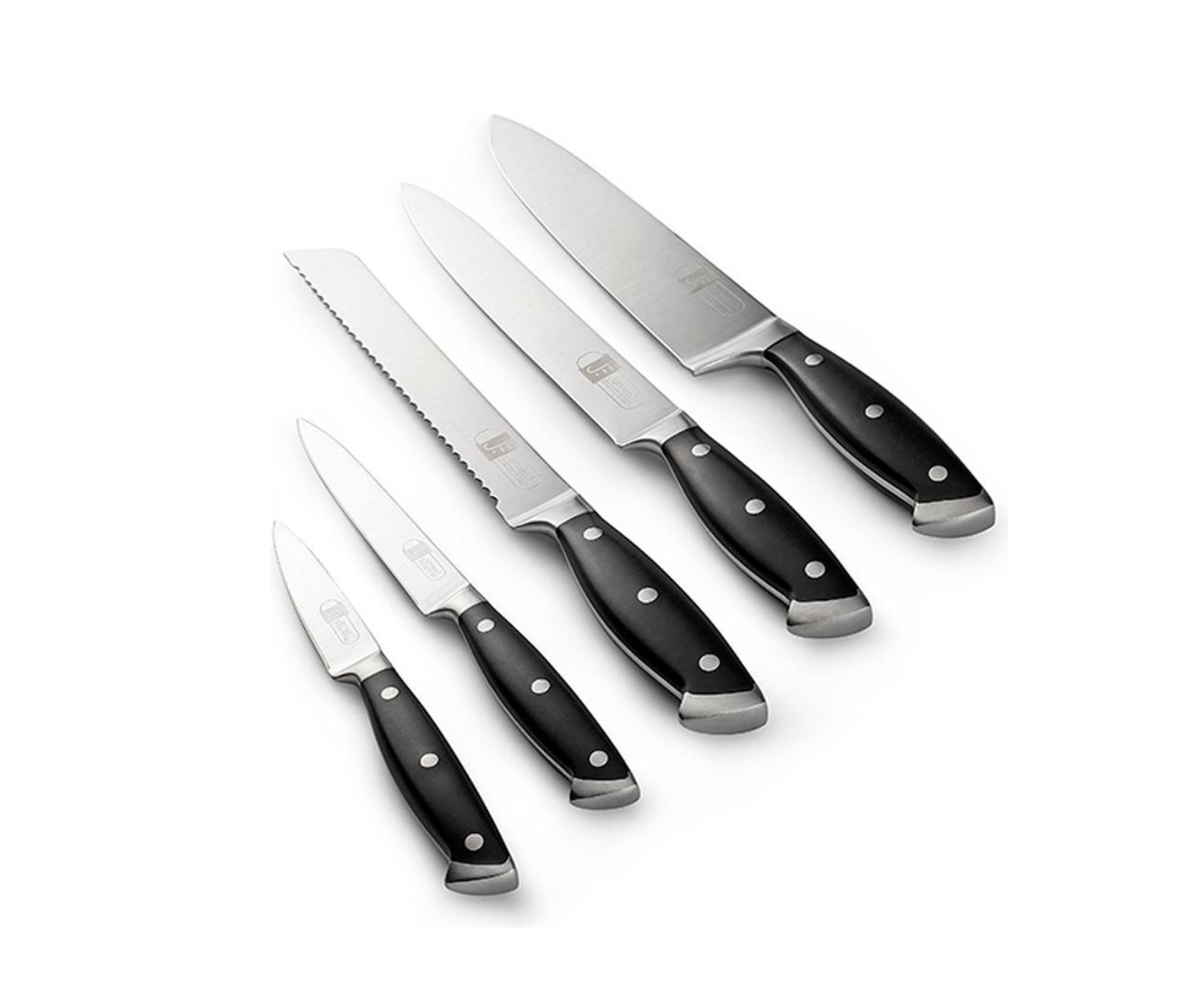 - Contem 01 Cepo de Madeira Acácia com Porta Tablet de Aço Inox; 01 Faca de Cozinha 8", 20 cm; 01 Faca de Cozinha Lâmina Estreita 7 ", 19 cm; 01 Faca de Pão 8", 20 cm; 01 Faca de Cozinha 4 ", 11 cm; 01 Faca de Legumes 3 ", 9 cm