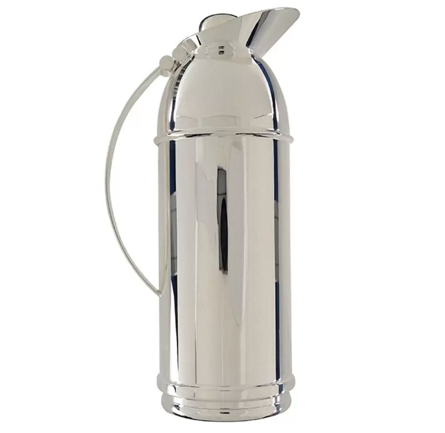 Em prata a Garrafa térmica traz uma proposta de sofisticação com ar descontraído, proporcionando um clima intimista para composição. O design da prata permite mesclar com um estilo mais atual até peças mais clássicas. quando a composição é feita com outras peças em prata a decoração fica imponente e convidativa deixando um estilo único na decoração da sua bandeja, mesa de café da manhã ou café da tarde
