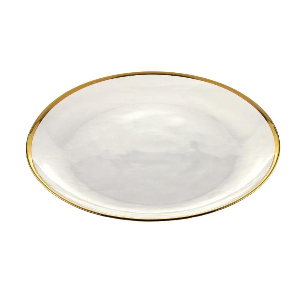 Jg c/ 4 Sousplat de Cristal com Filete Dourado Agate