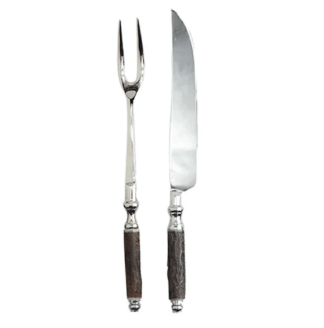 - Jogo de faca e garfo trinchante para servir em aço inox com cabo em madeira 2 peças