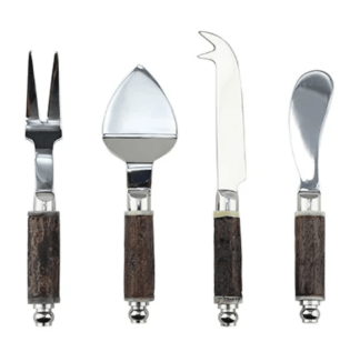 - Jogo de talheres para queijo em aço inox com cabo em madeira 4 peças