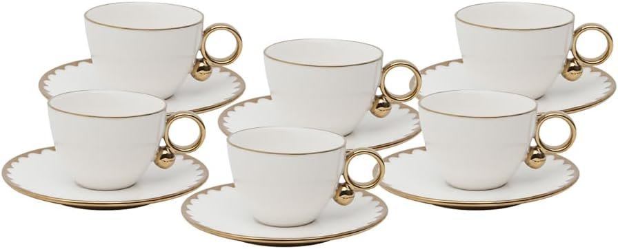 - Contém: 6 Xícaras Porcelana para Chá 200ml 12,3X9X6,2cm 6 Pires Egg 15,7X2cm