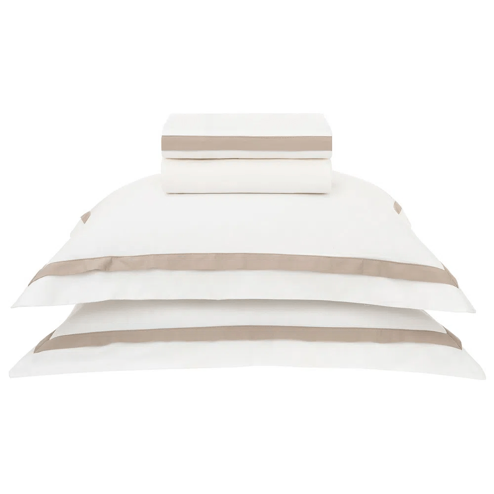 O jogo de cama queen Trussardi Vercelli possui estilo básico e elegante. O tecido 100% Algodão Egípcio é confeccionado em cetim 300 fios, passa pelo processo de sanforização e mercerização que deixa o seu toque mais suave e macio, tornando seu descanso ainda mais proveitoso. Seu design com pala dupla aplicada na vira dá charme ao ambiente.