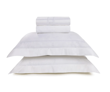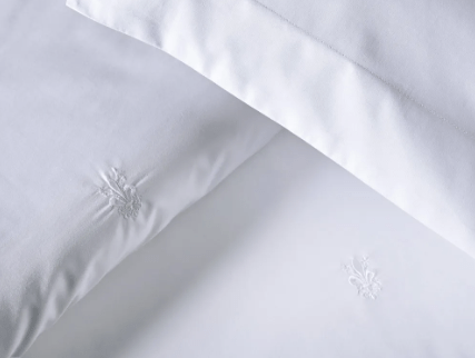 - Acabamento: Tecido sanforizado e mercerizado; Fronhas com 4 abas e bordado localizado; Dobra feira com bordado localizado; Lençol com elástico; Toque acetinado