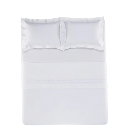 - Itens Inclusos: 1 Lençol de Cima; 1 Lençol de Baixo com Elástico e 2 Fronhas