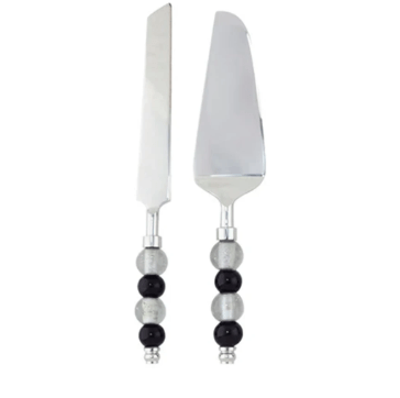 - Jogo de faca e espátula em aço inox com cabo em vidro 2 peças
