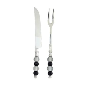 - Jogo de faca e garfo trinchante em aço inox com cabo em vidro 2 peças