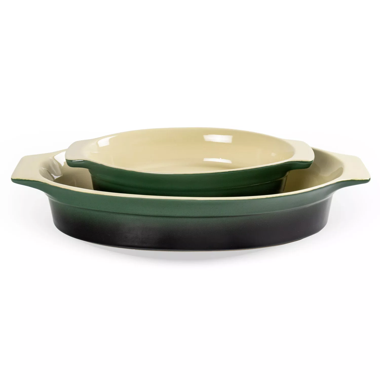 Conjunto de travessas oval em cerâmica verde degradê da coleção Atmosfera. Feitas em cerâmica de alta qualidade, essas travessas apresentam um degradê de tons verdes que trazem elegância e sofisticação à mesa. Perfeitas para servir suas refeições com estilo e praticidade, as travessas oval em cerâmica verde degradê são ideais para quem busca peças únicas e charmosas. Adicione um toque de requinte às suas refeições com esse conjunto exclusivo da BTC Decor.