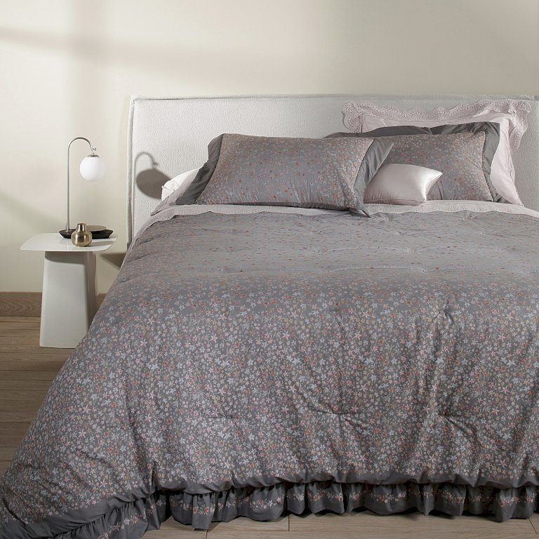 Porta travesseiro dispõe de abas nos três lados com fechamento envelope lateral. Como uma deliciosa viagem no tempo, a Colcha Aster remete às memórias afetivas do campo. O delicado floral liberty multicolor preenche a base em tons de cinza degradê, criando visual romântico, sofisticado e surpreendente. E a moldura lisa contrastante arremata o design em harmoniosa combinação. Extremamente aconchegante, o modelo possui toque incrivelmente macio, promovendo conforto absoluto para os momentos de descanso.