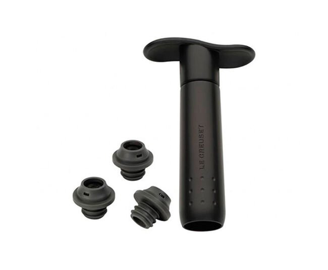 O Kit Bomba a Vácuo de metal Le Creuset preserva o vinho, removendo o ar da garrafa aberta, para então ser fechada com uma rolha durável. Ao colocar a rolha, é só bombear algumas vezes e o líquido será preservado perfeitamente. Sem dúvida, um utensílio fundamental para os amantes do mundo do vinho.