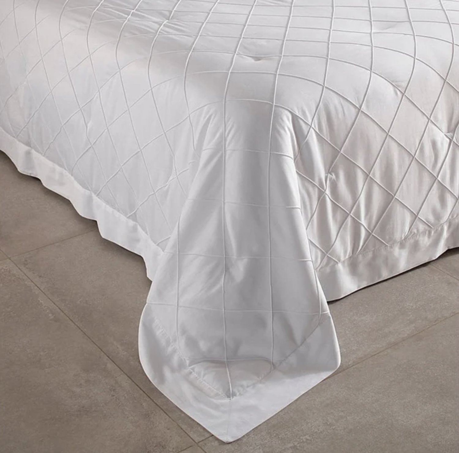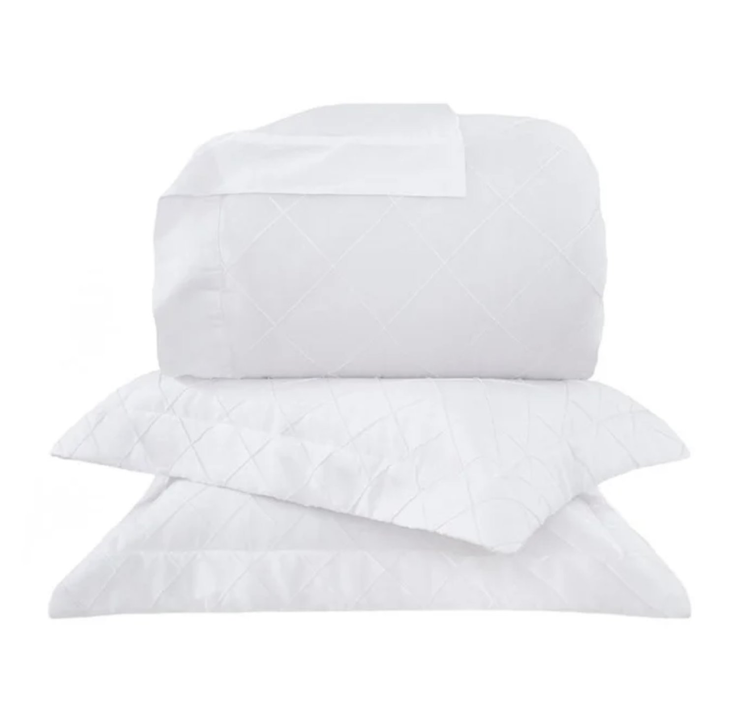 - Acabamento: Matelassê; Porta-travesseiros com aba nos três lados;