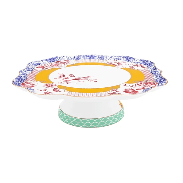 Sirva guloseimas neste pequeno prato de bolo com as cores vívidas da nossa coleção Royal. Perfeito para servir bolos e doces, o prato é decorado com cores marcantes, diferentes flores e um passarinho vermelho em destaque.