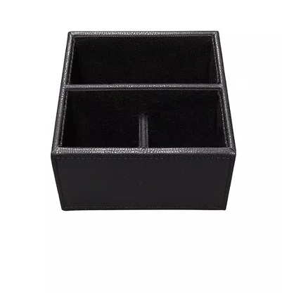 Porta Controle Remoto de Couro Preto C/3 Divisórias
