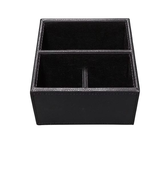 Este porta controle remoto de couro é a solução ideal para manter seus controles organizados e ao alcance das mãos. Seu design elegante e sofisticado, na cor preta, é perfeito para complementar sua decoração e garantir praticidade ao seu ambiente.