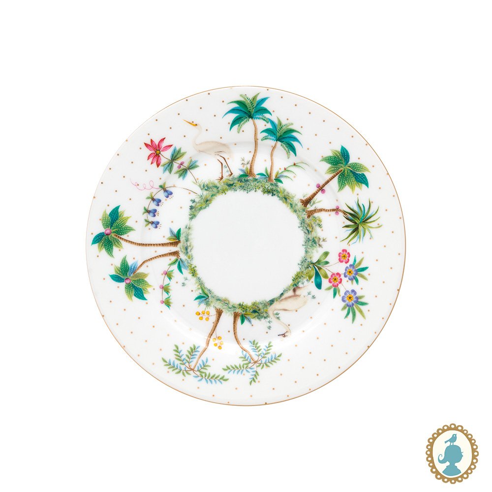 A delicadeza reina soberana nos detalhes alegres da coleção Jolie, com a rara garça real e os encantos criativos de uma ilha tropical, com palmeiras e os detalhes florais que você já é apaixonado. As pinceladas douradas no acabamento de cores suaves relembrando a refrescância do mar em meio ao branco e azul. A coleção também conta com peças em vidro lapidado riscado em azul ou rosa.