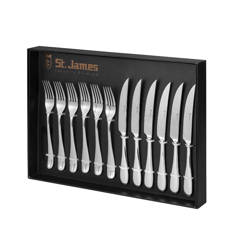 Faqueiro para Churrasco Serenity Inox 12 Peças St James é ideal para abrilhantar aquele churrasco descontraído com sua família, amigos e convidados, servindo até 6 pessoas.