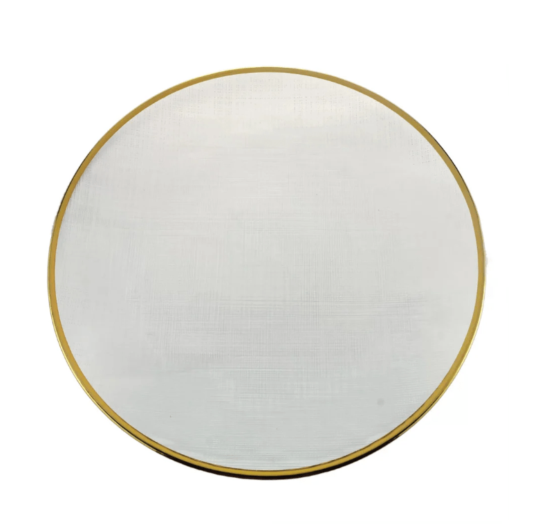 Sousplat Cristal Chumbo C/Borda Dourada Linen 33Cm