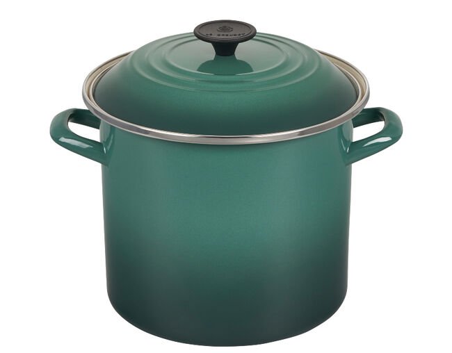 A Stock Pot da Le Creuset tem laterais retas e altas com grande capacidade, sendo ideais para o preparo de sopas, guisados, molhos e massas. Disponível em uma variedade de tamanhos e cores. O Aço Carbono Esmaltado fornece o aquecimento rápido e limita a evaporação realçando os sabores dos alimentos. Leve e durável, o aço carbono acelera o processo de fervura para o cozimento dos alimentos e retém o calor para manter as preparações líquidas aquecidas. Seu interior esmaltado não absorve odores e sabores de outras preparações. Fácil de limpar, não reativo e resistente a manchas e sabores, tornando o Esmalte em Aço Carbono ideal para uso diário.
