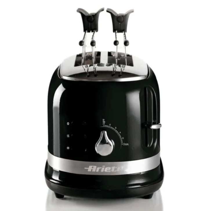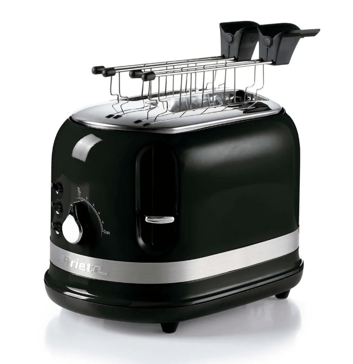 Torradeira de 2 fatias com pinça – Com a torradeira Moderna você pode torrar até 2 fatias de pão ou sanduíches ao mesmo tempo usando as pinças práticas fornecidas e sempre obtendo um resultado crocante e perfumado graças aos 6 níveis de tostagem.