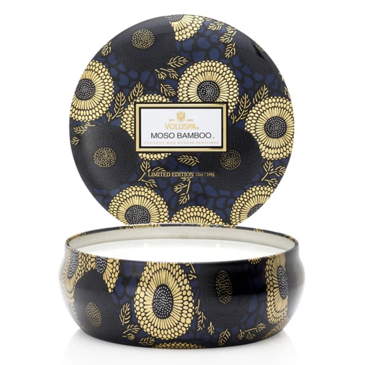 A exclusiva mistura de cera de coco da Voluspa é despejada à mão em um recipiente de metal adornado com um padrão de verniz e é coberta por uma tampa combinando que mantém a vela livre de poeira quando não está em uso. Os 3 pavios permitem que você desfrute da fragrância por 60 horas. As velas são despejadas à mão nos Estados Unidos e apresentam a mistura de cera de coco e pavios 100% naturais, que queimam de forma limpa. Os produtos são livres de ftalatos, pesticidas, parabenos e sulfatos, e nunca são testados em animais. Dê um novo propósito a lata transformando-o em uma lembrança após a última queima.